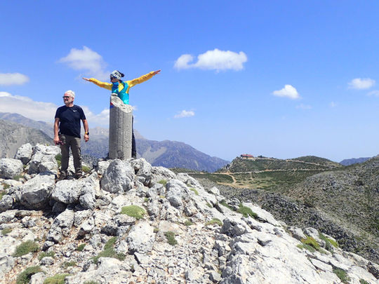 Early start with wind blasts and fog that did not let us enjoy the see of seas laying bellow Mellidau peak 2133. Aegean to the north and Lybean to the south!