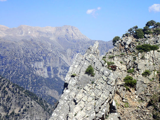 From Mavra Gremna we follow the trail to the plateau Roussies (altitude 2100m) where the two paths to Pachnes and Katsiveli start.